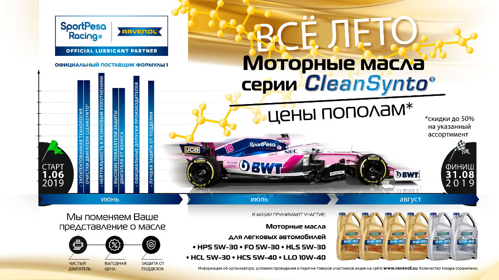Акция продлится с 01.06.2019 по 31.08.2019. Успей купить любимые масла RAVENOL с безумной скидкой!